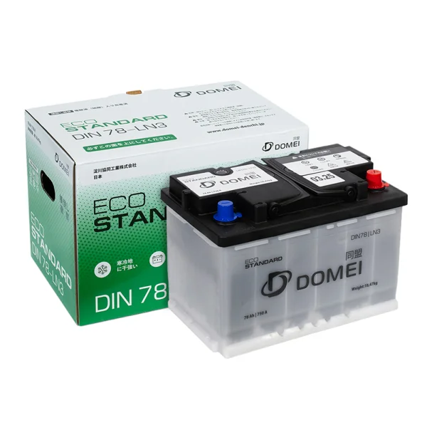 Представляем автомобильный Аккумулятор DOMEI Eco STANDARD 78Ah euro EN750, страна производитель которого: Япония. Этот аккумулятор обладает ёмкостью 78 А/ч и пусковым током 750 А, что обеспечивает надежный запуск автомобиля.